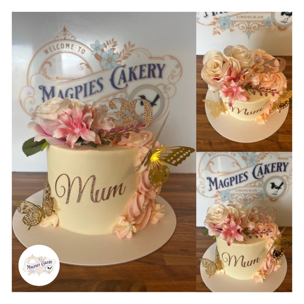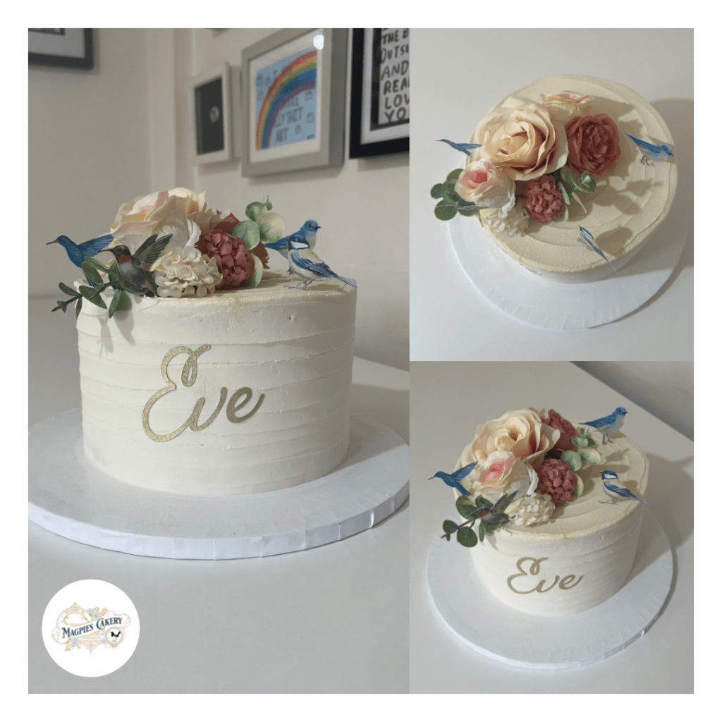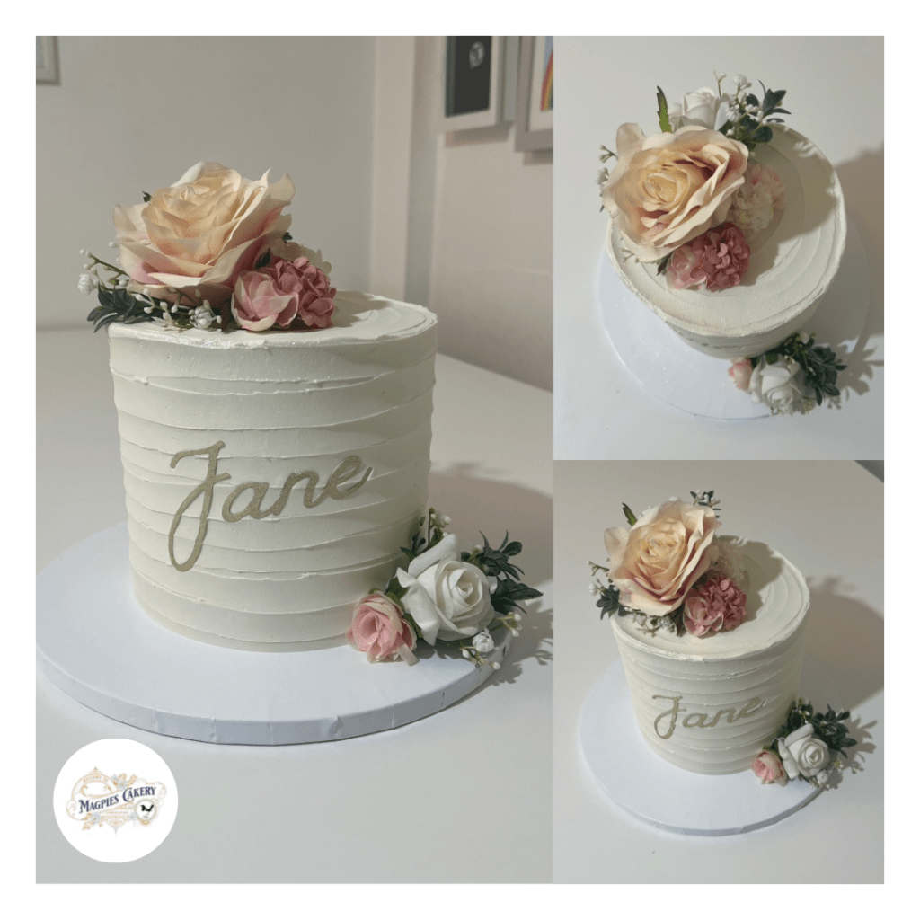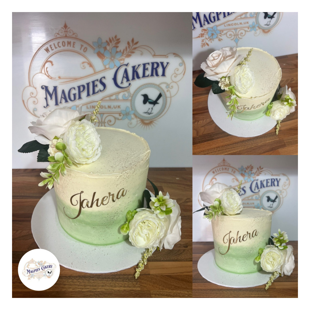 I love my signature floral cakes. Perfect for every occasion your cake will be finished with buttercream and decorated with faux florals. You can also add a name and age to personalise.